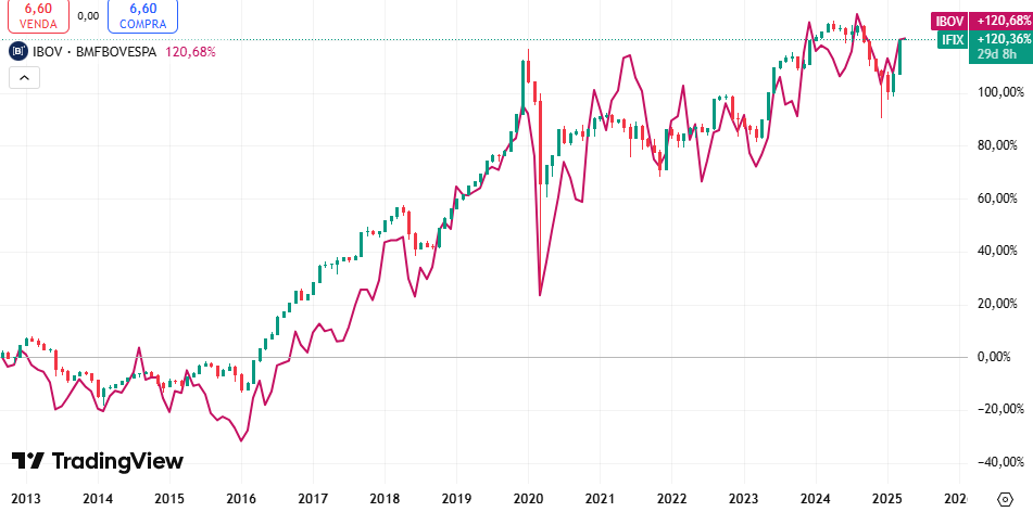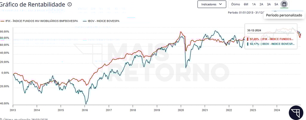 Em ambos os casos, o IFIX apresentou maior rentabilidade e, ao mesmo tempo, menor volatilidade, demonstrando um equilíbrio superior entre retorno e estabilidade.