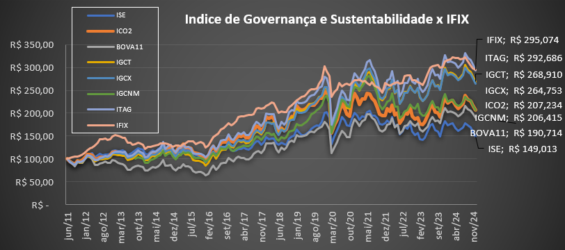 Agora, analisaremos o desempenho do IFIX em comparação com os índices de Governança e Sustentabilidade.