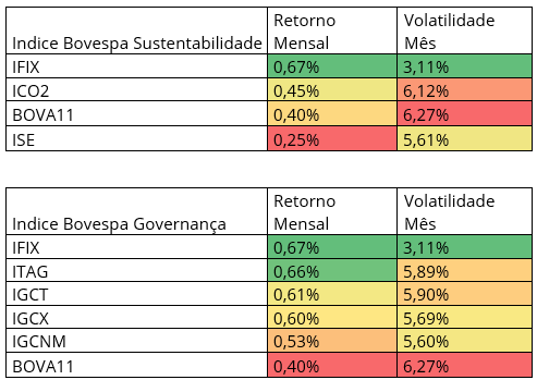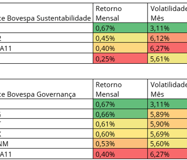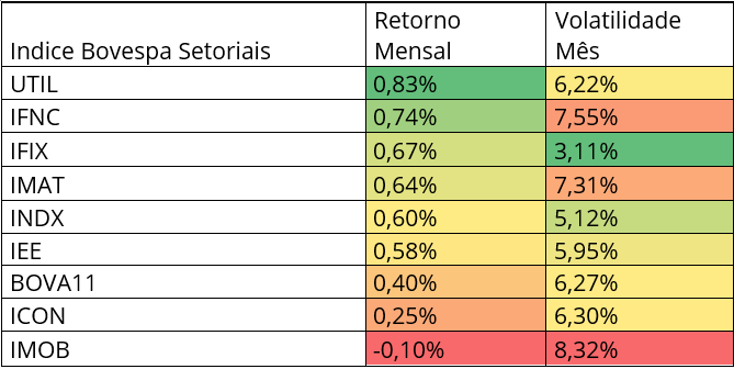Índice Bovespa Setoriais Retorno Mensal Volatilidade Mês